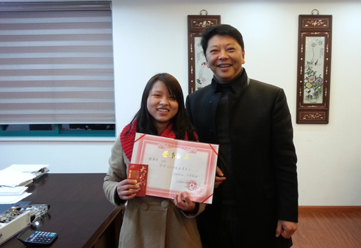总经理杨兵给恒立2012年度优秀员工谢赛琴颁奖。